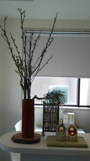 お花屋さんによって,桃の花を買いました。