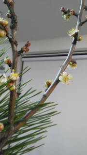 事務所でも,梅を買って花瓶に生けていましたが,暖房が効いているため,お正月明けには満開となりました(笑)。