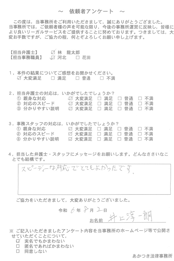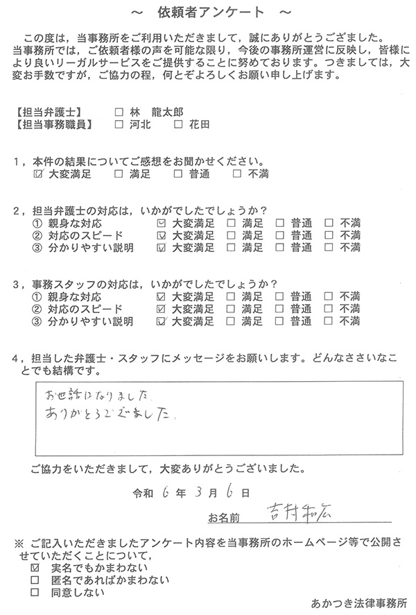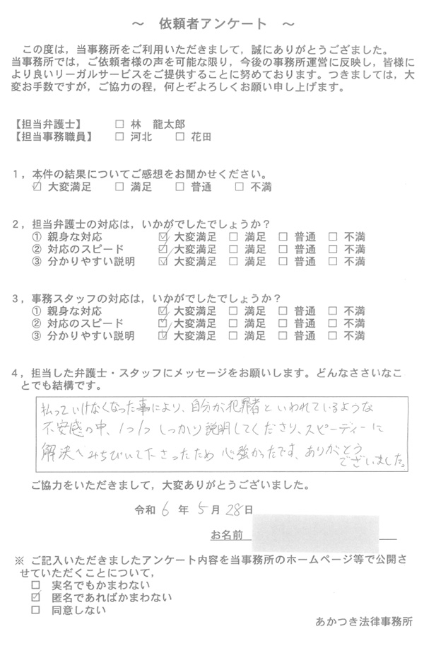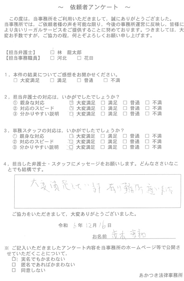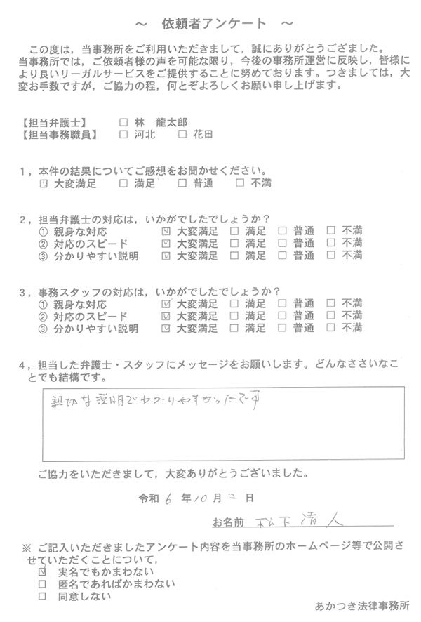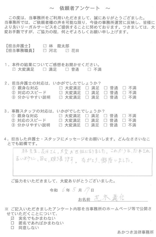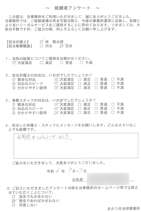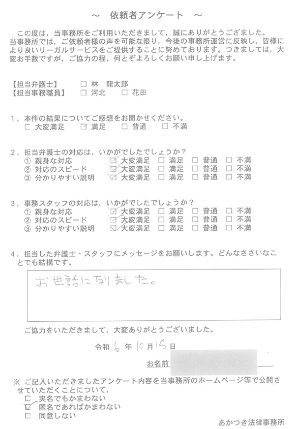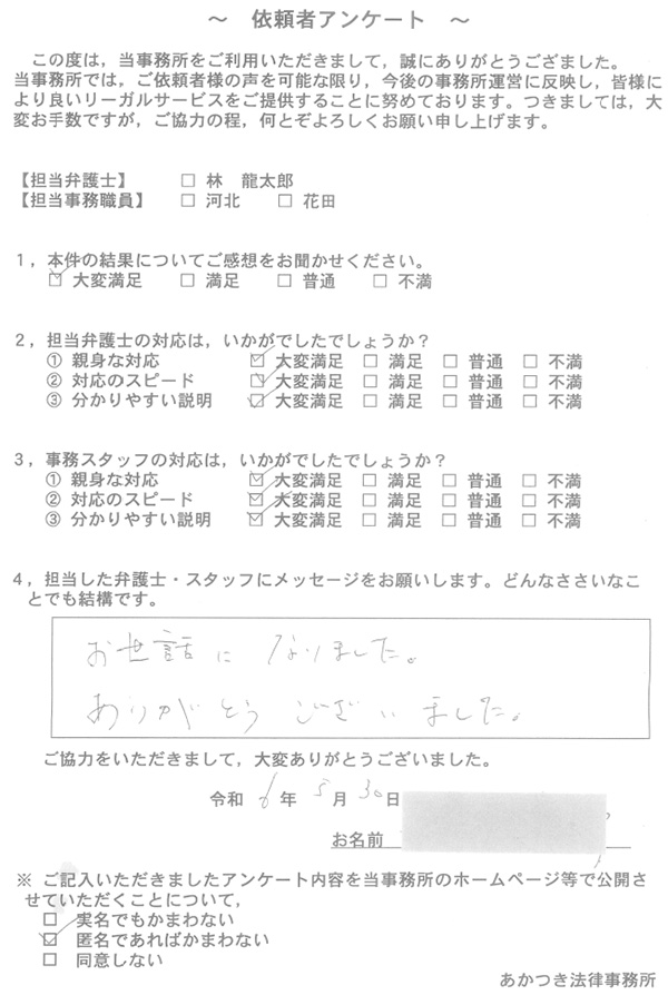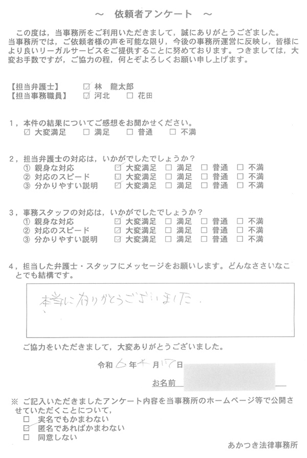 あかつき法律事務所に寄せられた依頼者様のお声を一部ご紹介いたします。